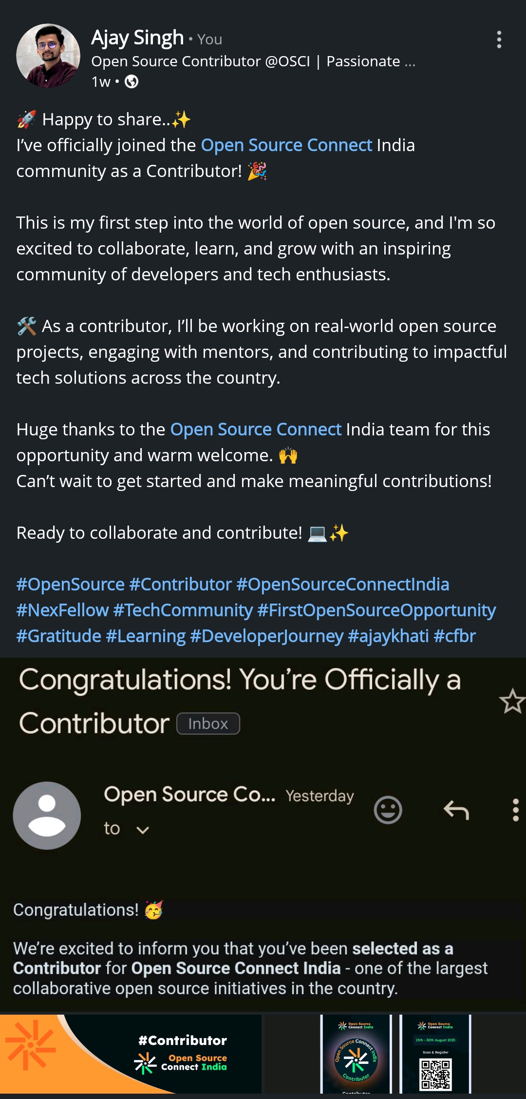 In this Open Source journey, I am working as a Contributor to real words projects and getting hands-on experience through projects.