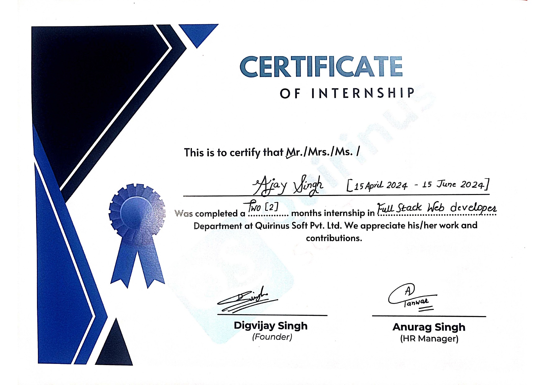 In this Full Stack web development internship, I actively worked on various industry projects to polish the existing skills to more better.